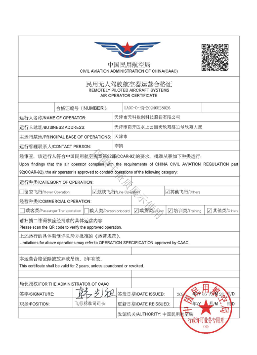 • 民用無人駕駛航空器運(yùn)營(yíng)合格證
